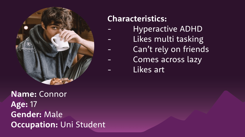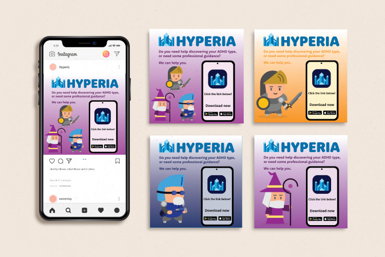Hyperia is an app, which is driven by a singular mission: to empower individuals with ADHD to thrive. Users of Hyperia enter a digital world filled with like minded individuals. As they contribute to community pages, attend events and book meetings with specialists, they will reach milestones where they will unlock new items to customise their character. Each user will be assigned a group based on their ADHD type which is determined by the starter quiz.